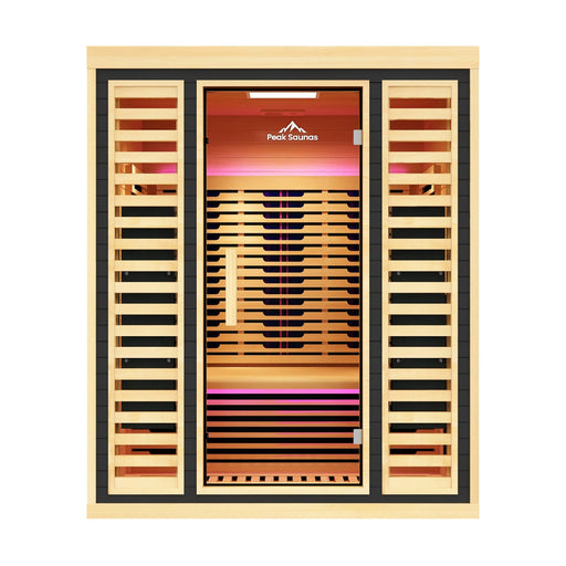View full detailsPeak Saunas Denali 3-Person Indoor Full Spectrum Infrared Sauna with Two XL Medical-Grade Red Light Therapy Panels & Smart WiFi App Control