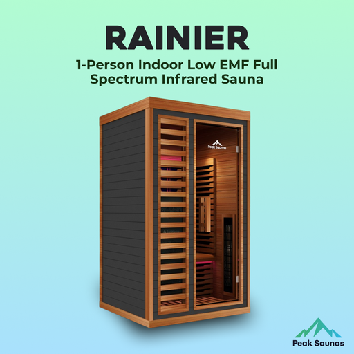 View full detailsPeak Saunas Rainier 1-Person Indoor Full Spectrum Infrared Sauna with XL Medical-Grade Red Light Therapy & Smart WiFi App Control