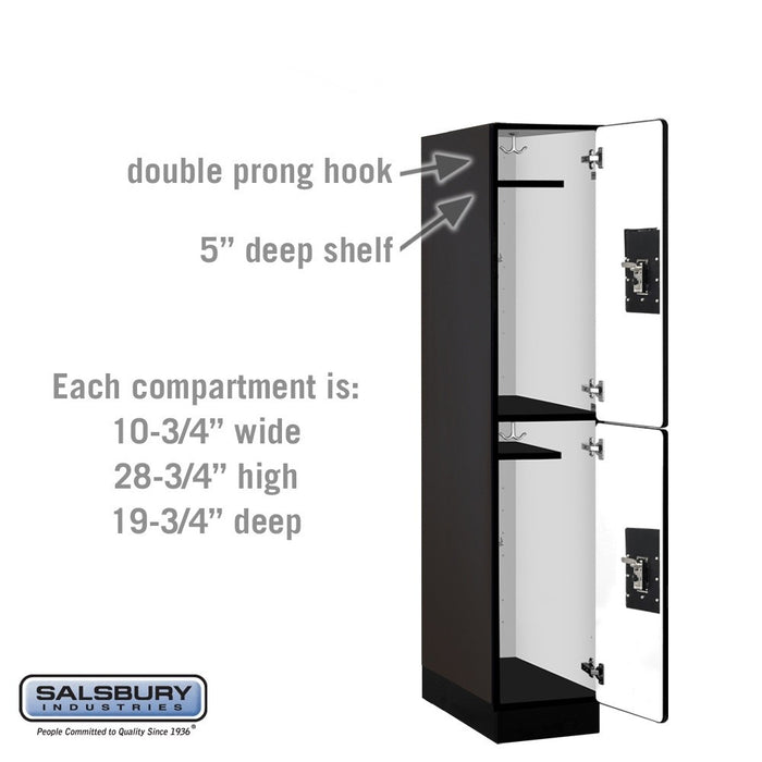 Salsbury 12" Wide Double Tier Designer Wood Locker - 1 Wide - 5 Feet High - 21 Inches Deep - Black - Silver Resettable Combination Locks