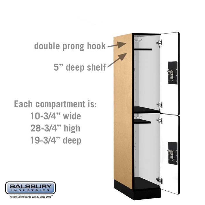 Salsbury 12" Wide Double Tier Designer Wood Locker - 1 Wide - 5 Feet High - 21 Inches Deep - Maple - Black Resettable Combination Locks