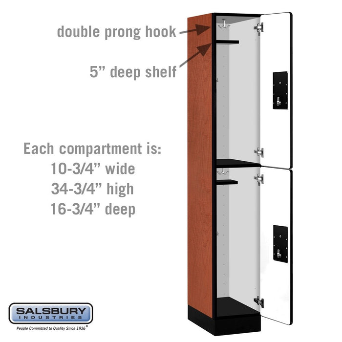 Salsbury 12" Wide Double Tier Designer Wood Locker - 1 Wide - 6 Feet High - 18 Inches Deep - Cherry - Silver Electronic Locks