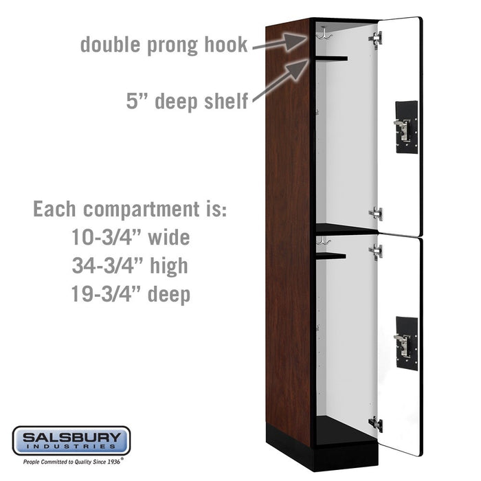 Salsbury 12" Wide Double Tier Designer Wood Locker - 1 Wide - 6 Feet High - 21 Inches Deep - Mahogany - Silver Resettable Combination Locks