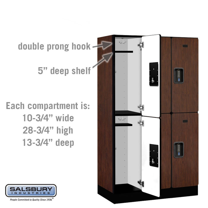 Salsbury 12" Wide Double Tier Designer Wood Locker - 3 Wide - 5 Feet High - 15 Inches Deep - Mahogany - Black Electronic Locks