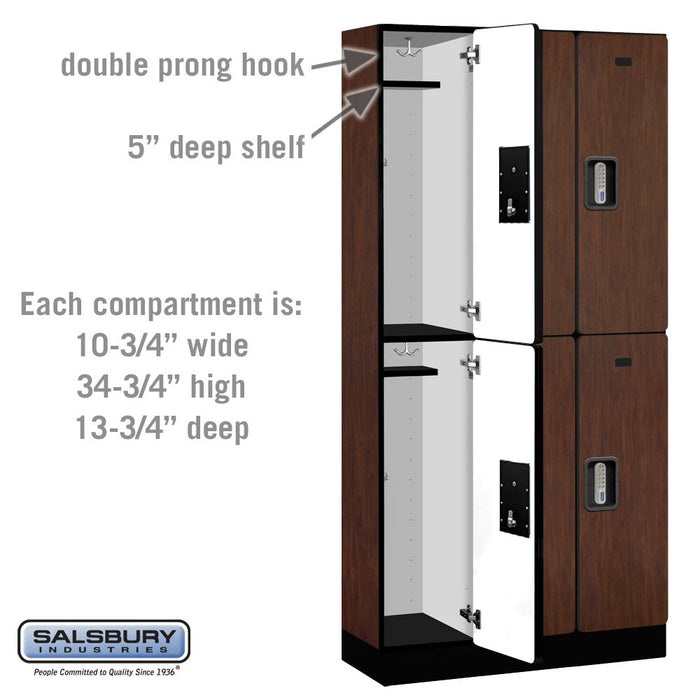 Salsbury 12" Wide Double Tier Designer Wood Locker - 3 Wide - 6 Feet High - 15 Inches Deep - Mahogany - Silver Electronic Locks