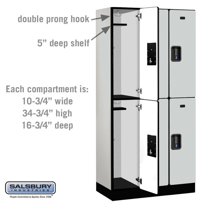 ✓ Easy Shipping - Directly to you for this Salsbury 12" Wide Double Tier Designer Wood Locker - 3 Wide - 6 Feet High - 18 Inches Deep - Gray - Black Electronic Locks.