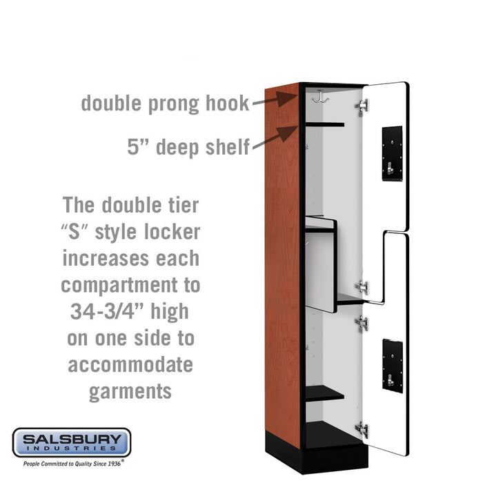 Salsbury 12" Wide Double Tier 'S' Style Designer Wood Locker - 1 Wide - 5 Feet High - 18 Inches Deep - Cherry - Black Electronic Locks