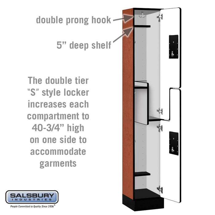 Salsbury 12" Wide Double Tier 'S' Style Designer Wood Locker - 1 Wide - 6 Feet High - 15 Inches Deep - Cherry - Silver Electronic Locks
