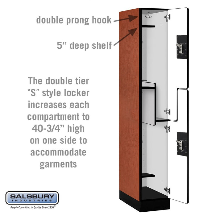 Salsbury 12" Wide Double Tier 'S' Style Designer Wood Locker - 1 Wide - 6 Feet High - 21 Inches Deep - Cherry - Black Resettable Combination Locks