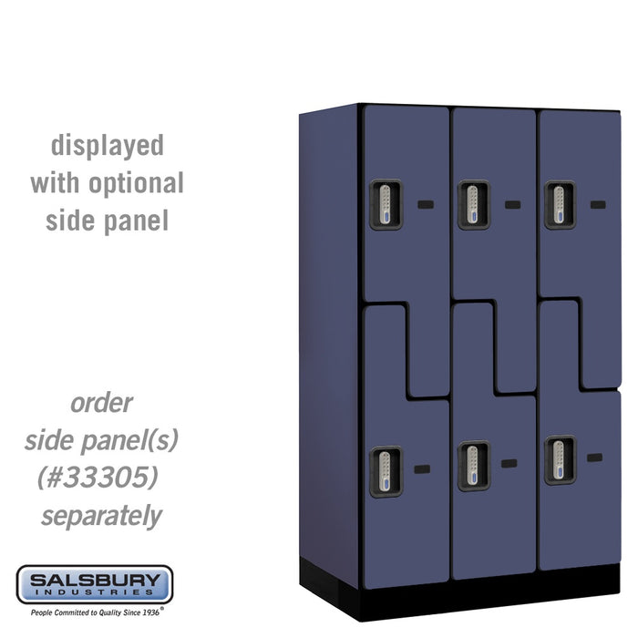 Salsbury 12" Wide Double Tier 'S' Style Designer Wood Locker - 3 Wide - 5 Feet High - 21 Inches Deep - Blue - Silver Electronic Locks