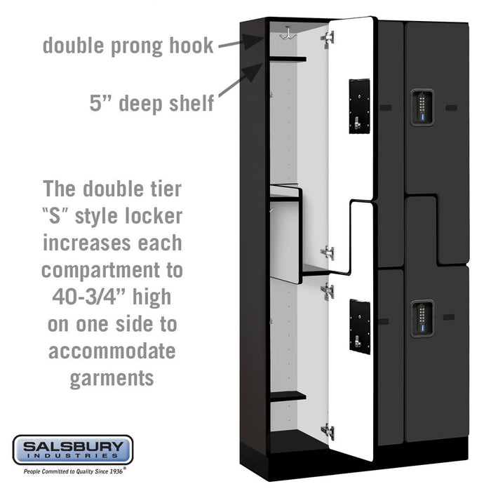 Salsbury 12" Wide Double Tier 'S' Style Designer Wood Locker - 3 Wide - 6 Feet High - 15 Inches Deep - Black - Black Electronic Locks
