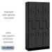 ✓ Easy Shipping - Directly to you for this Salsbury 12" Wide Double Tier 'S' Style Designer Wood Locker - 3 Wide - 6 Feet High - 15 Inches Deep - Black - Black Electronic Locks.