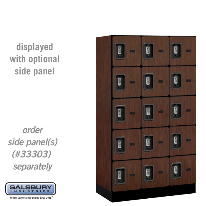 Salsbury 12" Wide Five Tier Box Style Designer Wood Locker - 3 Wide - 5 Feet High - 18 Inches Deep - Mahogany - Silver Resettable Combination Locks