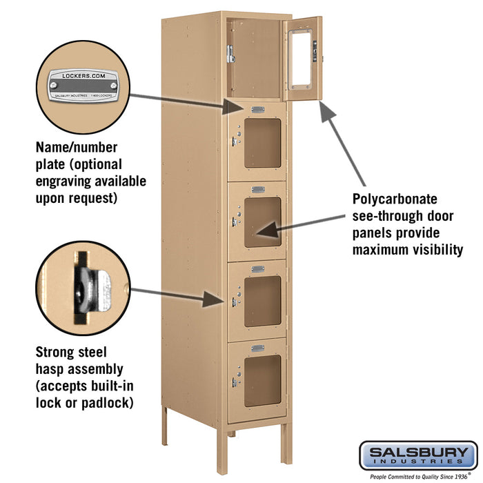 Salsbury 12" Wide Five Tier Box Style See-Through Metal Locker - 1 Wide - 5 Feet High - 18 Inches Deep - Tan - Assembled