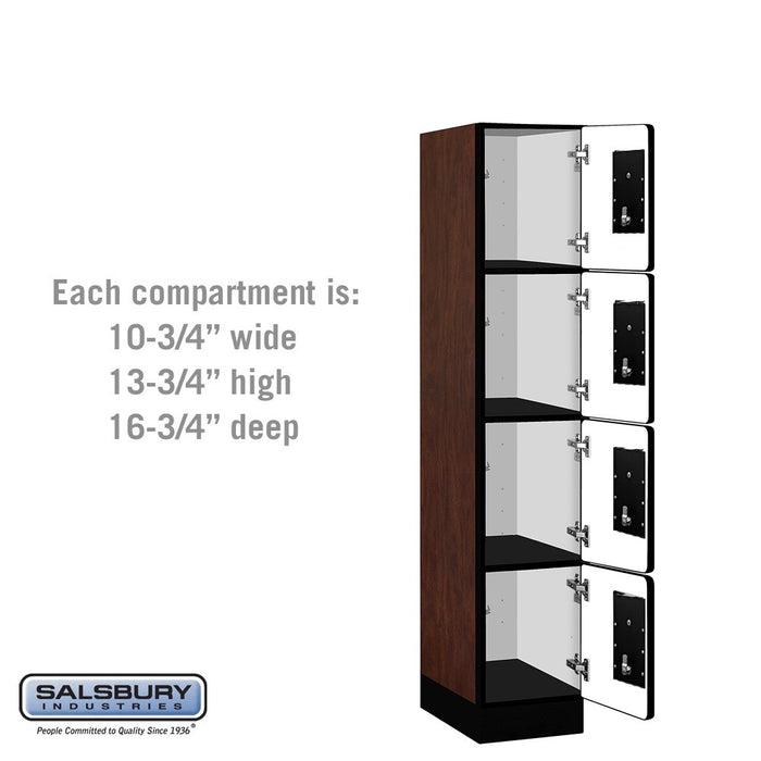 Salsbury 12" Wide Four Tier Designer Wood Locker - 1 Wide - 5 Feet High - 18 Inches Deep - Mahogany - Silver Electronic Locks