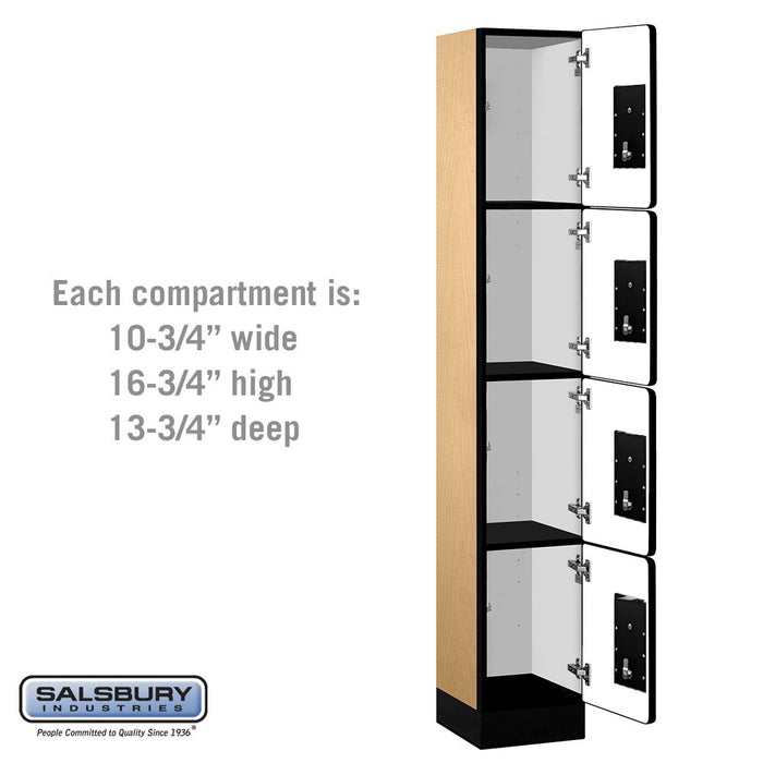 Salsbury 12" Wide Four Tier Designer Wood Locker - 1 Wide - 6 Feet High - 15 Inches Deep - Maple - Black Electronic Locks