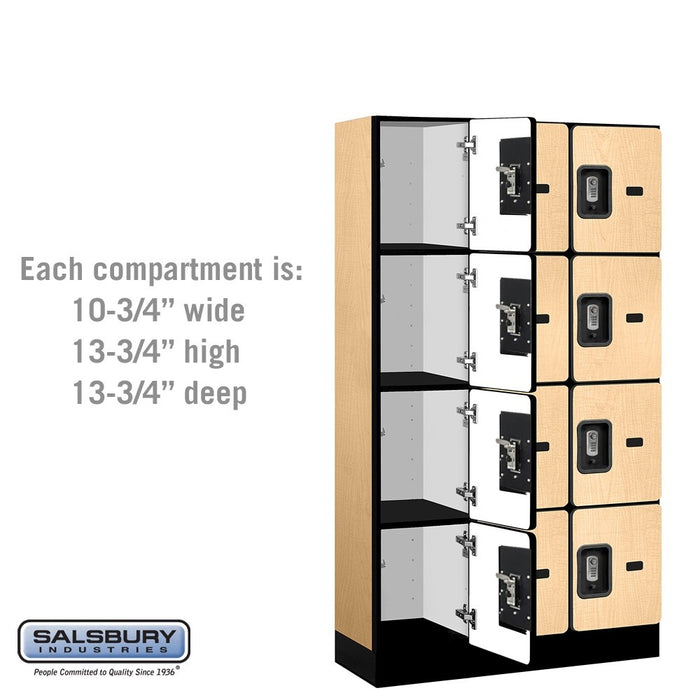 Salsbury 12" Wide Four Tier Designer Wood Locker - 3 Wide - 5 Feet High - 15 Inches Deep - Maple - Silver Resettable Combination Locks