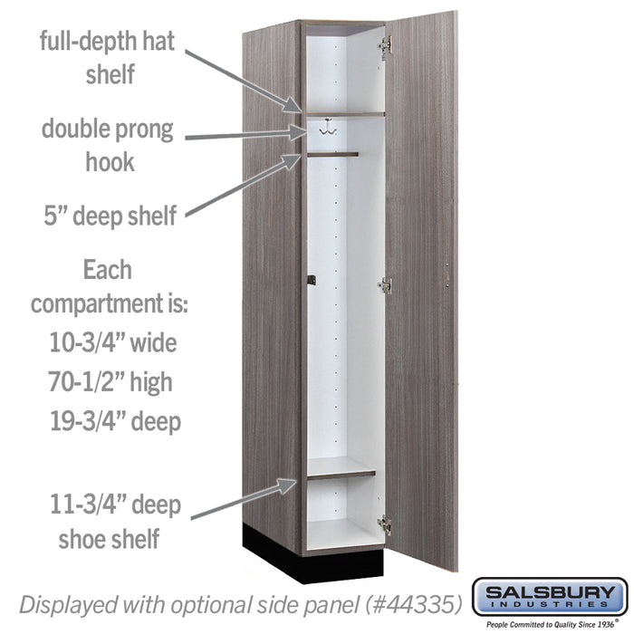 Salsbury 12" Wide Premier Wood Locker - Single Tier - 1 Wide - 6 Feet High - 21" Deep - Skyline Walnut - Hasps