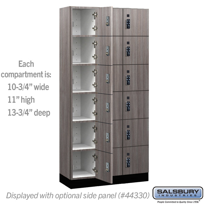 Salsbury 12" Wide Premier Wood Locker - Six Tier Box Style - 3 Wide - 6 Feet High - 15" Deep - Skyline Walnut - Resettable Combination Locks