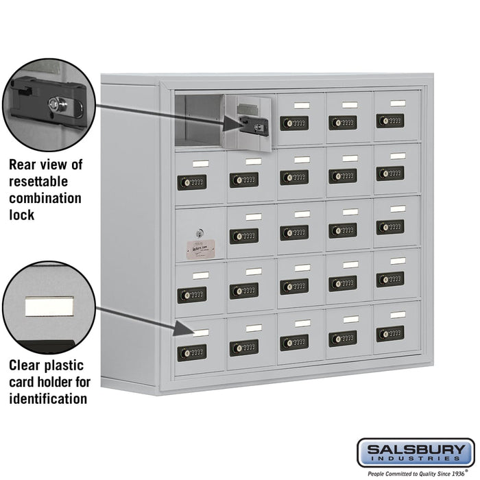 Salsbury Surface Mounted Cell Phone Storage Locker with 25 A Doors (24 usable) in Aluminum - Resettable Combination Locks