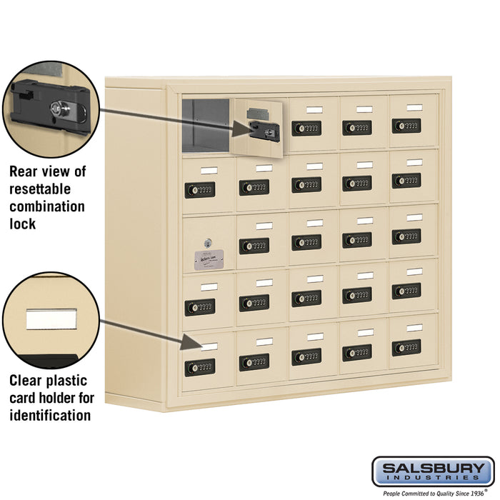 Salsbury Surface Mounted Cell Phone Storage Locker with 25 A Doors (24 usable) in Sandstone - Resettable Combination Locks