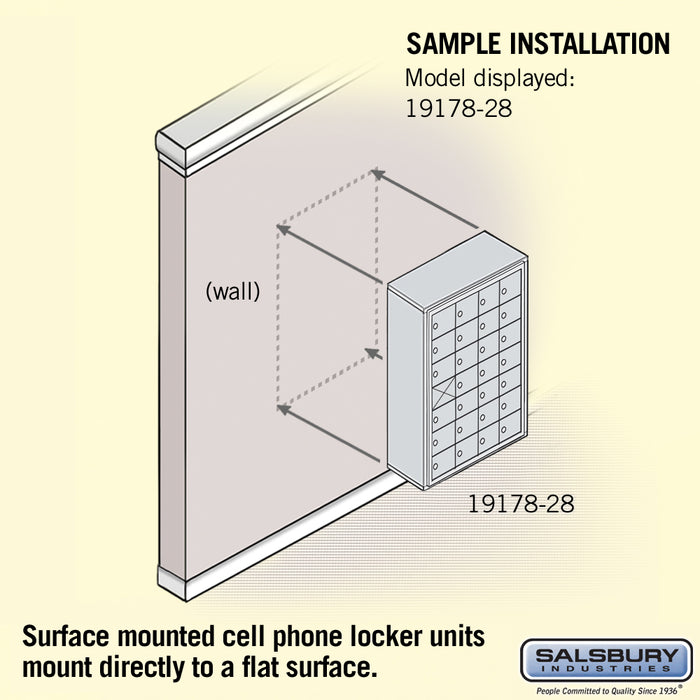 We follow the return & refund policy of Salsbury Industries Lockers for this Salsbury Surface Mounted Cell Phone Storage Locker with 28 A Doors (27 usable) in Bronze - Keyed Locks. CLICK HERE to find the policy of Salsbury Industries Lockers. If Salsbury Industries Lockers is not on this list, please reach out to us!