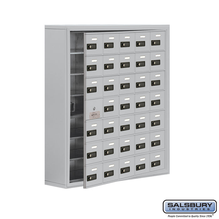 Salsbury Surface Mounted Cell Phone Storage Locker with 35 A Doors (34 usable) in Aluminum - Resettable Combination Locks